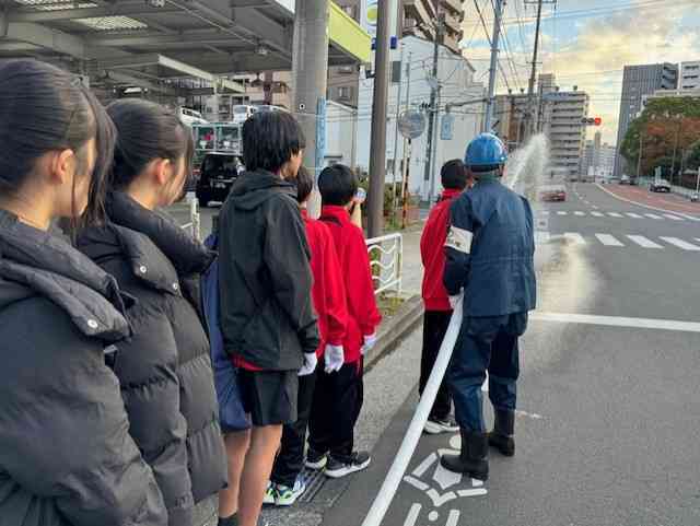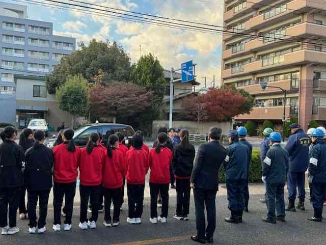 12月6日(土)南砂1・2丁目町会の防災訓練がありました。 本校からは14名の生徒が参加しました。 地域の方と一緒に、消防団の方々に教わりながら、スタンドパイプを使用した消火栓からの放水訓練などを行いました。 開会式直前には消防隊が実際の火災現場に駆けつけていくというリアルな姿もありました。 地域の火災は地域で消す。それ以前に、火事を起こさない! 乾燥の時季を迎え、火災も多いそうです。 お互いに用心しましょう!【添付ファイル】